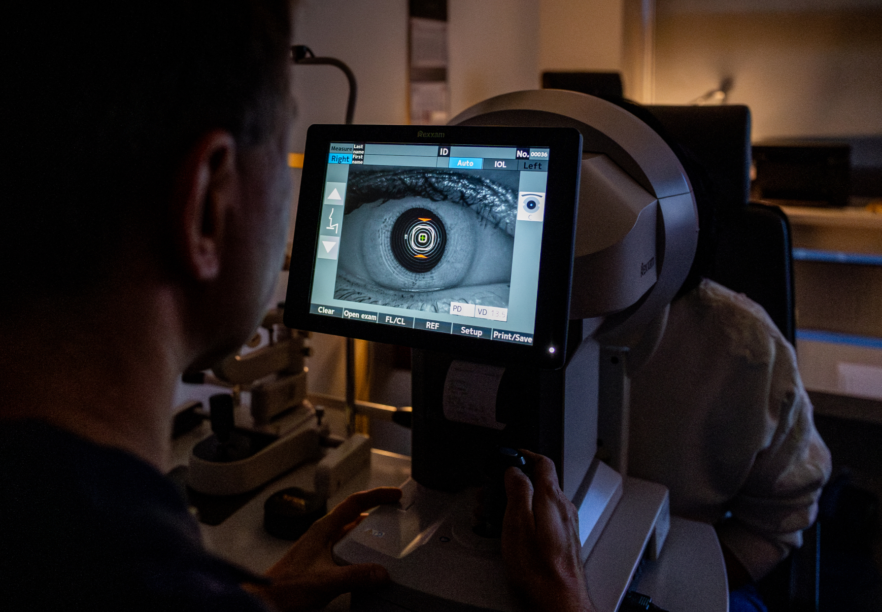 Diagnostyka rogówki i soczewki przy użyciu lampy szczelinowej, istotna przy ocenach przedzabiegowych i diagnostyce zapaleń.